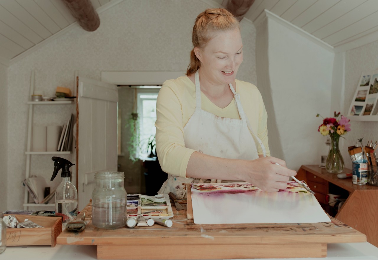 Lär dig grunderna i akvarellmåleri bekvämt hemifrån, utan tidspress