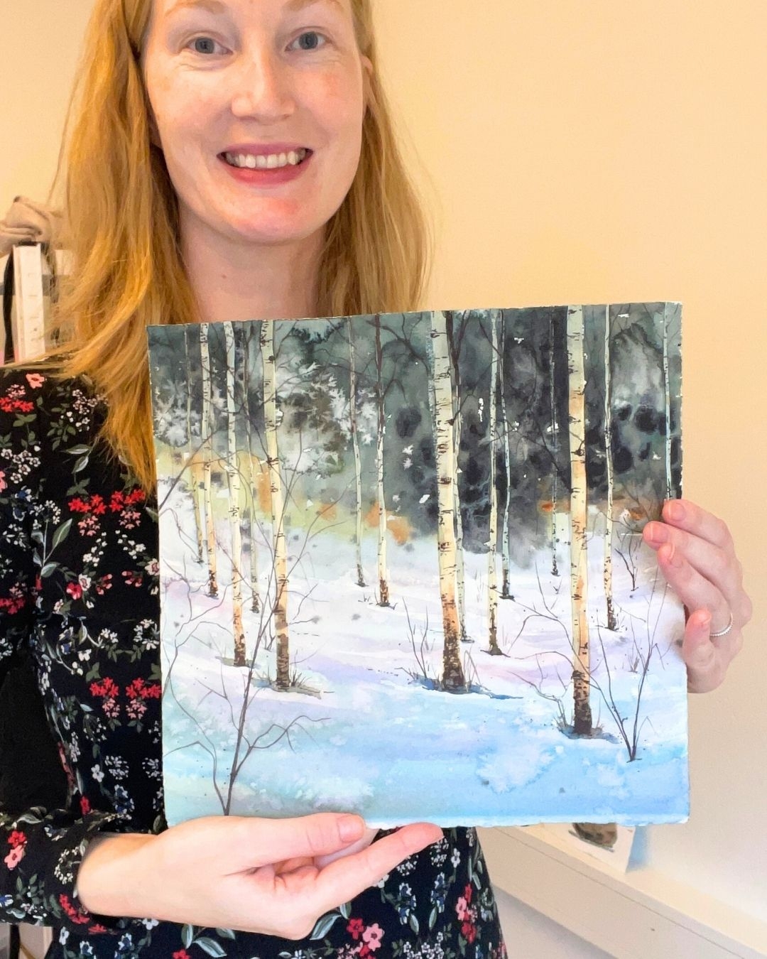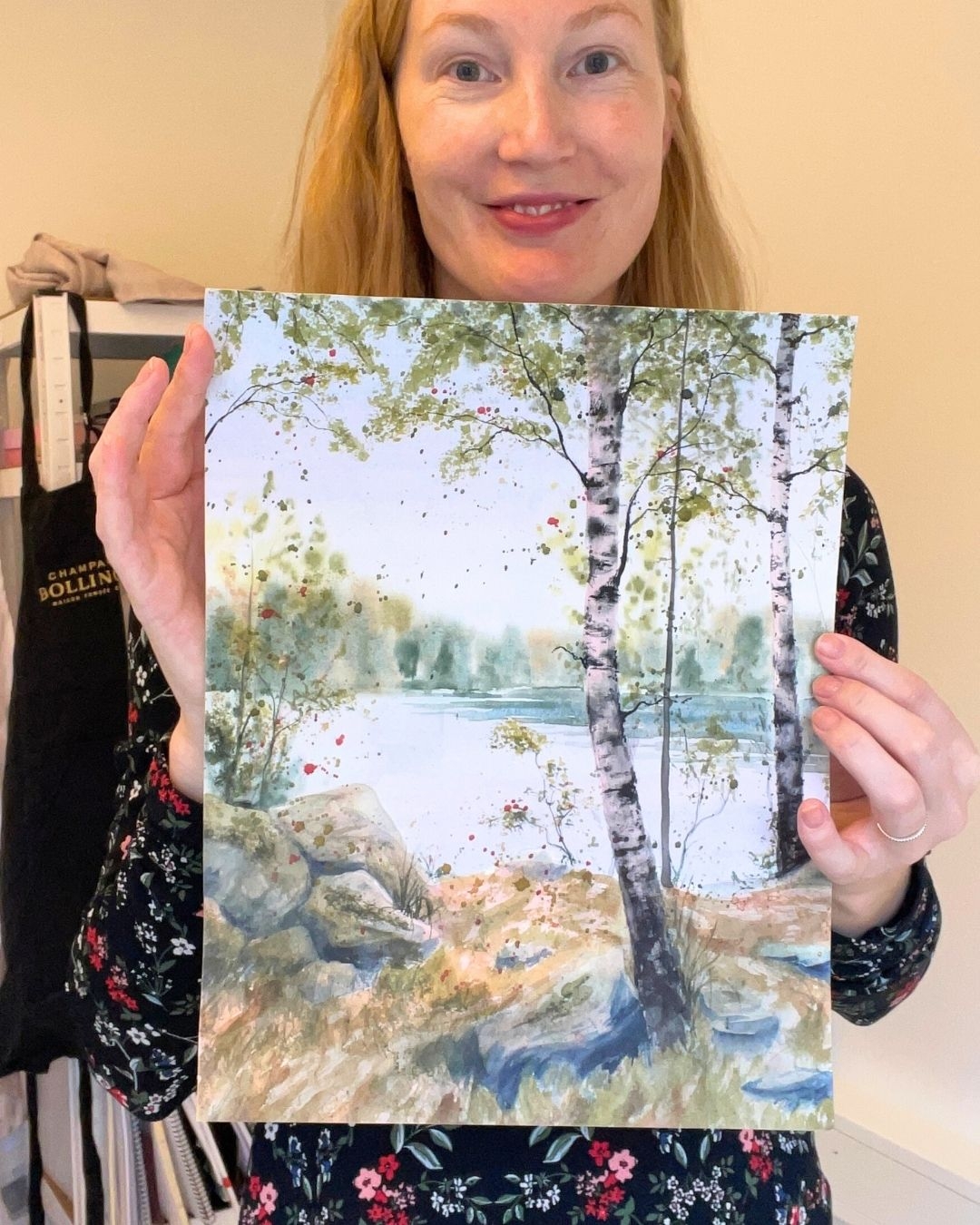 Den här målningen är skapad 2024 och är målad i akvarell på bomullspapper. Målningen säljs utan ram och mäter 27x24cm